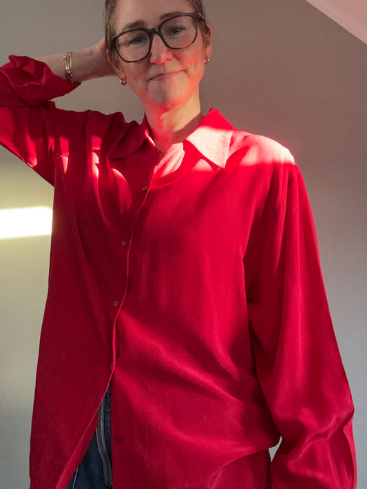 Art of Silk Tie Rack Vintage silk shirt red L - up to 14