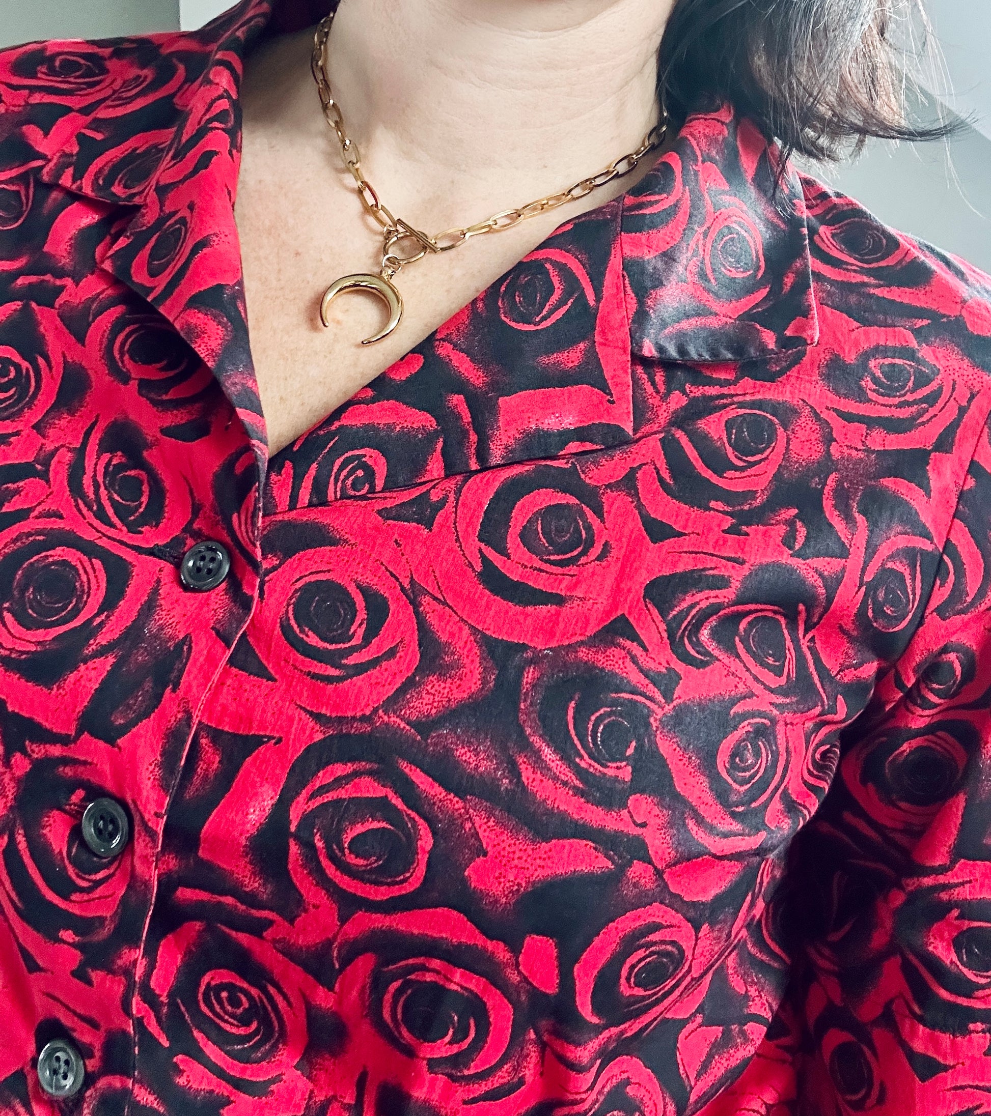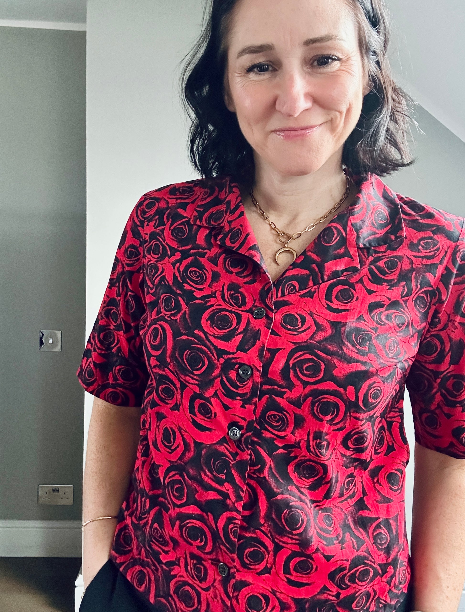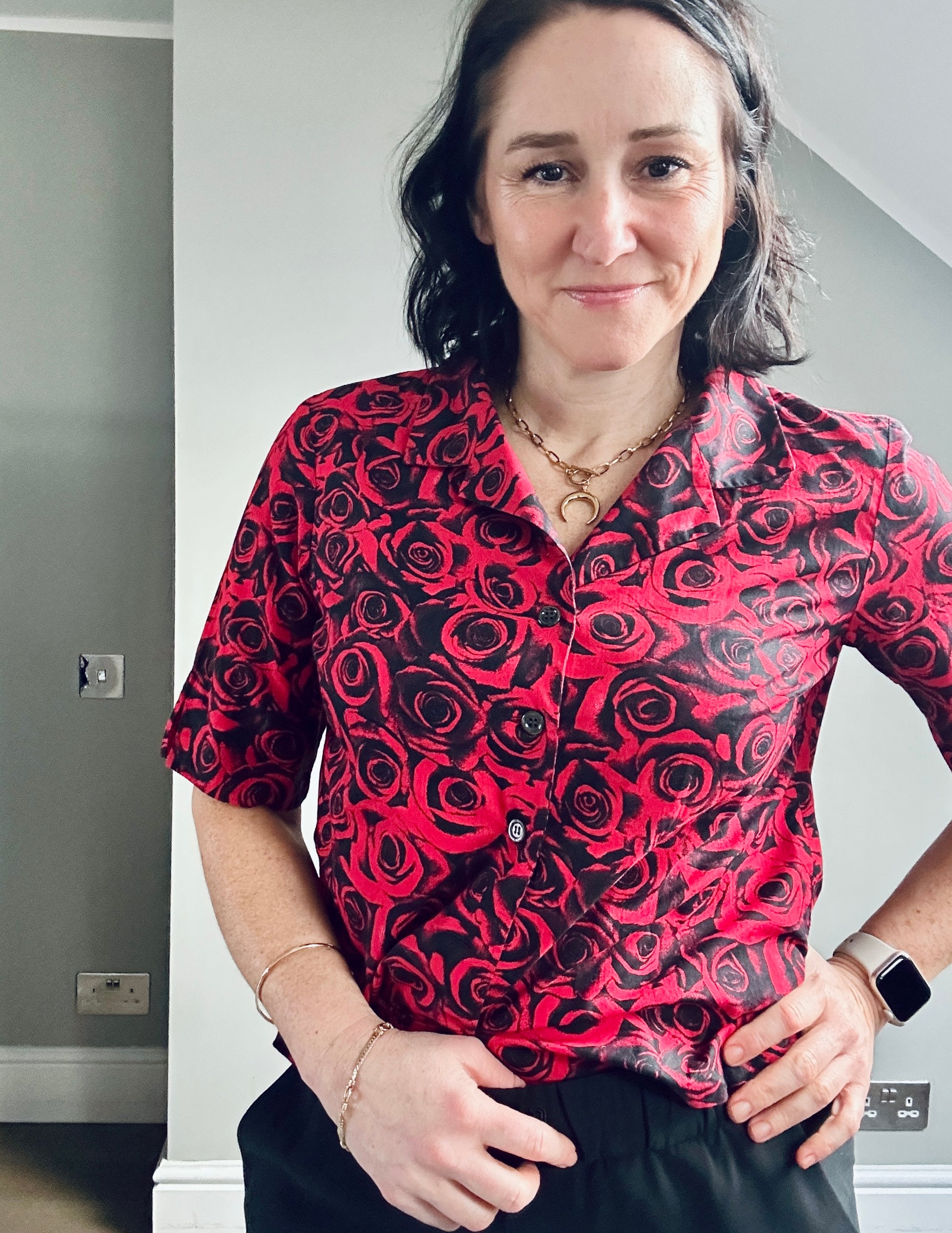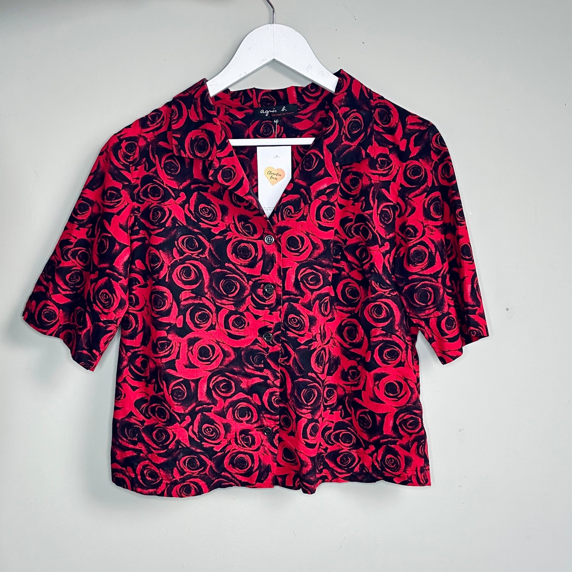 Agnes B red roses cotton shirt short sleeve size 10-12