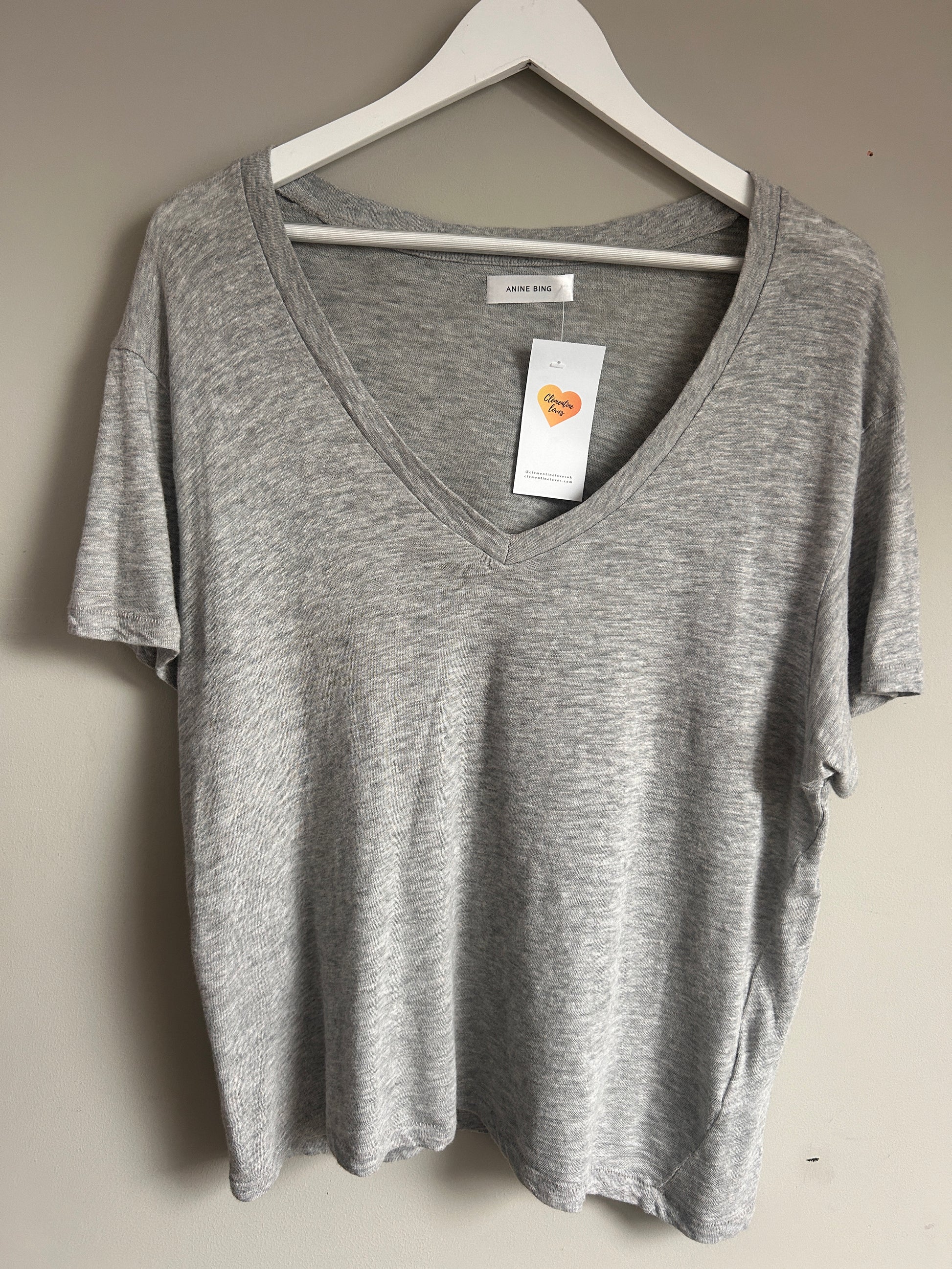 Anine Bing grey cotton blend V neck tee-shirt L - up to 14