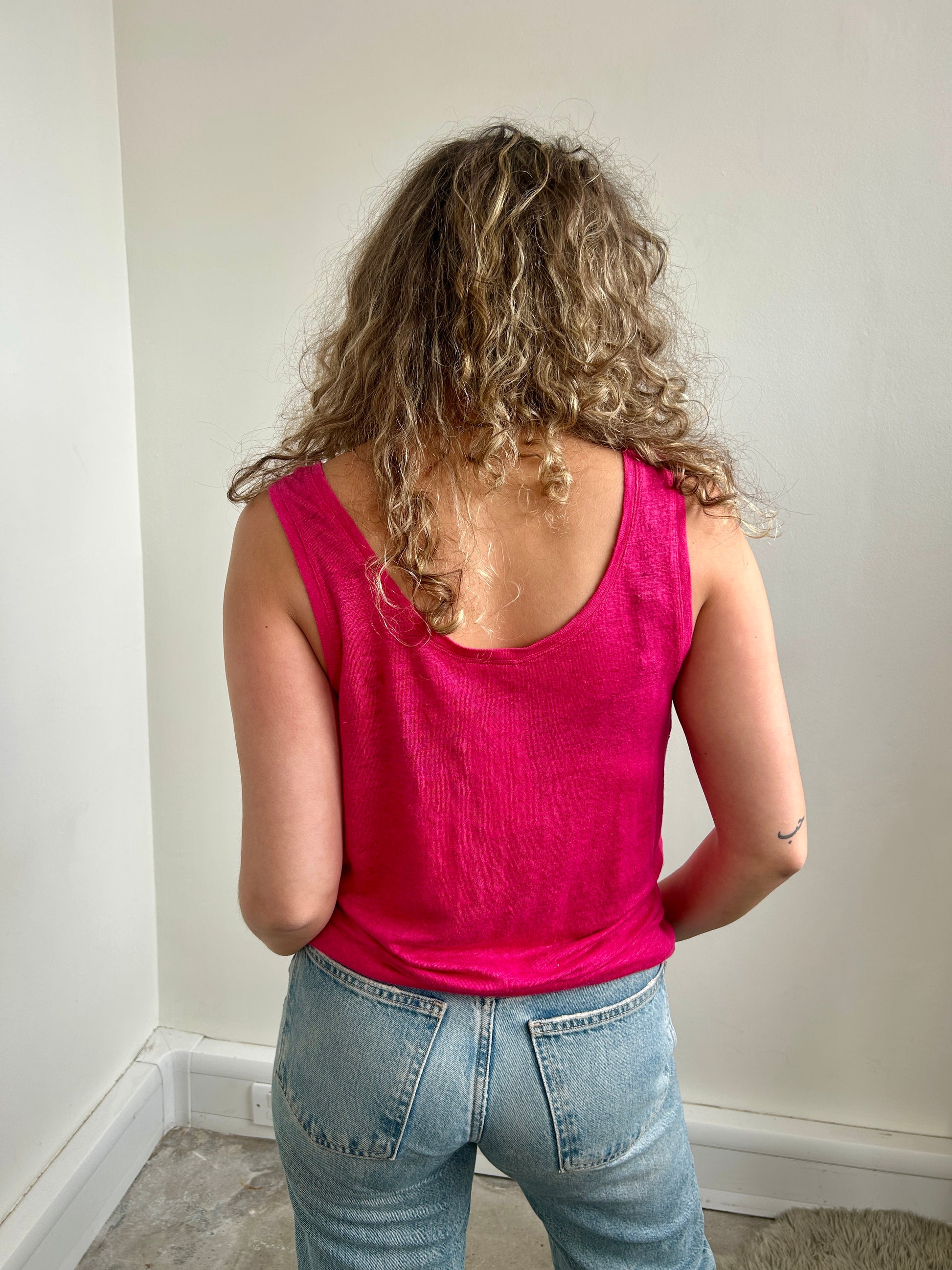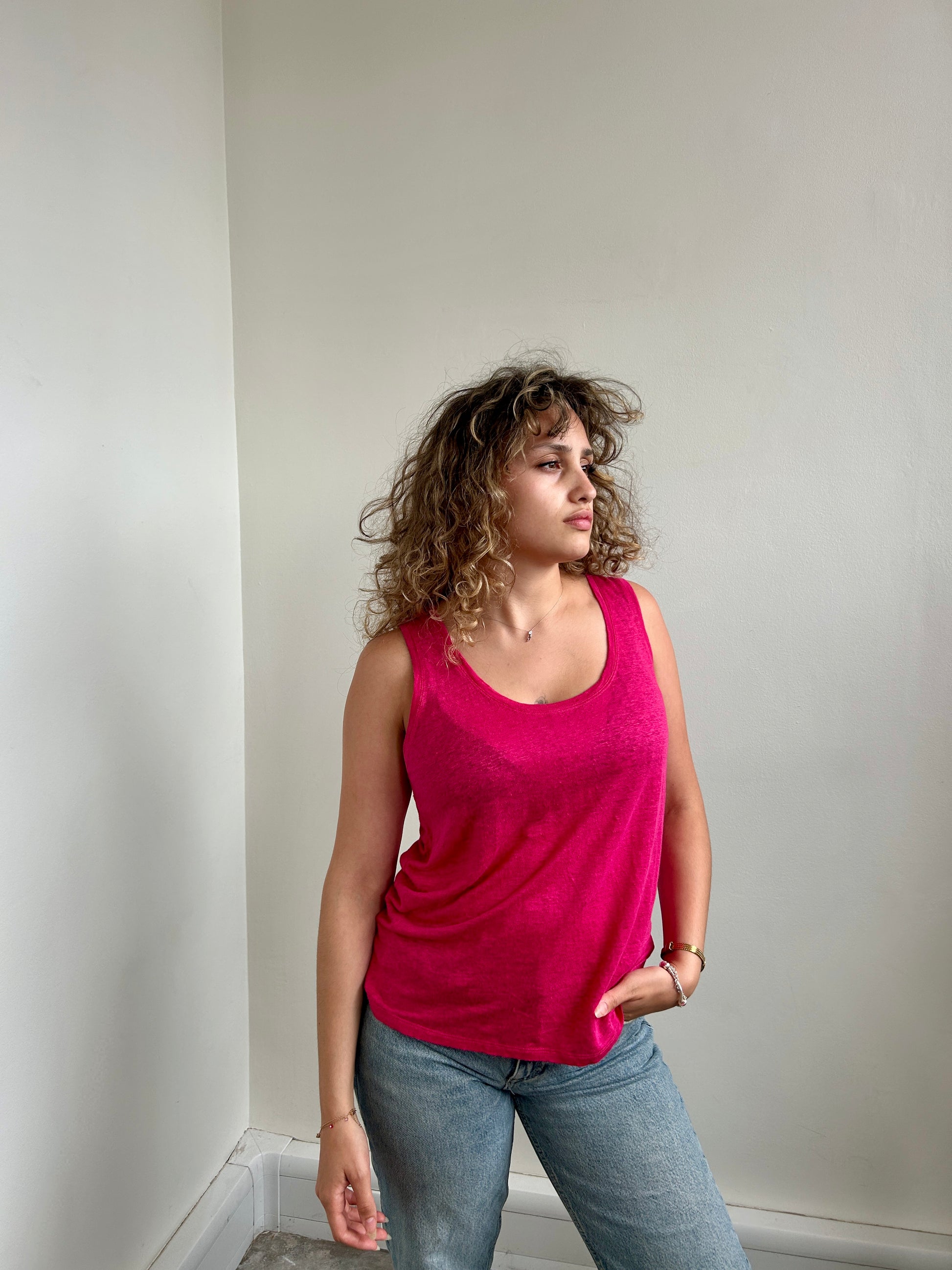 Great staple sleeveless tee in natural fibre with a pop of colour.