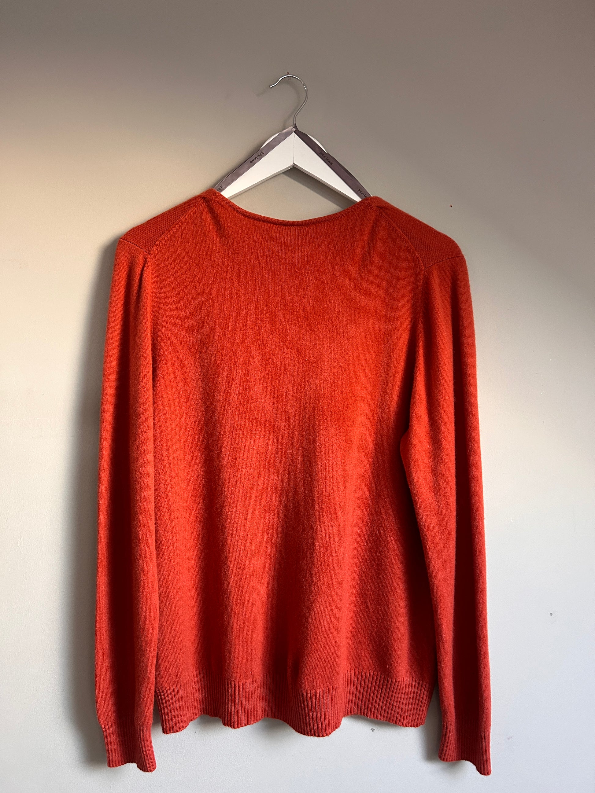 John Lewis burnt orange cashmere V neck jumper up to 14