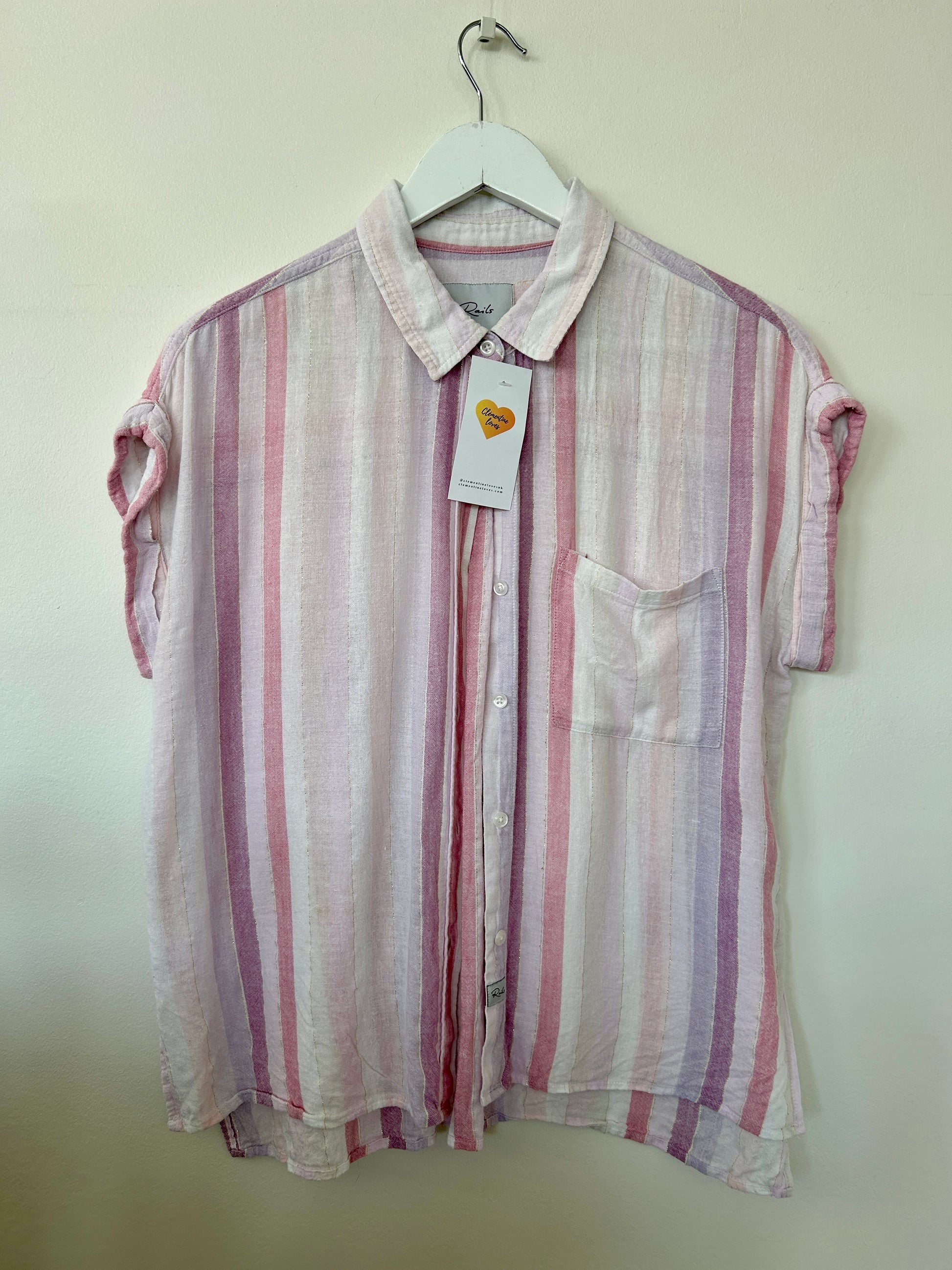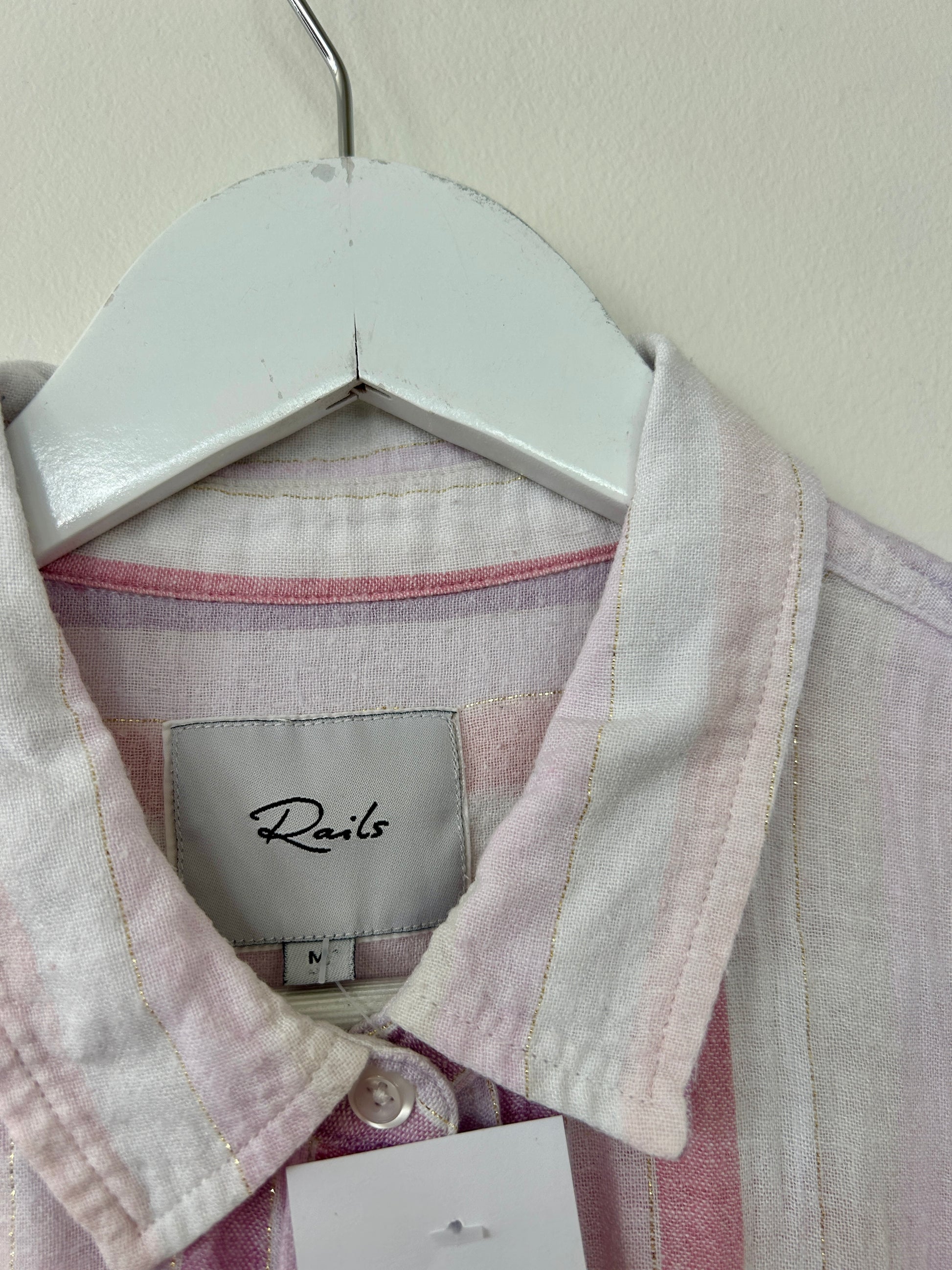 Rails short sleeve pink striped shirt linen blend M - 10/12